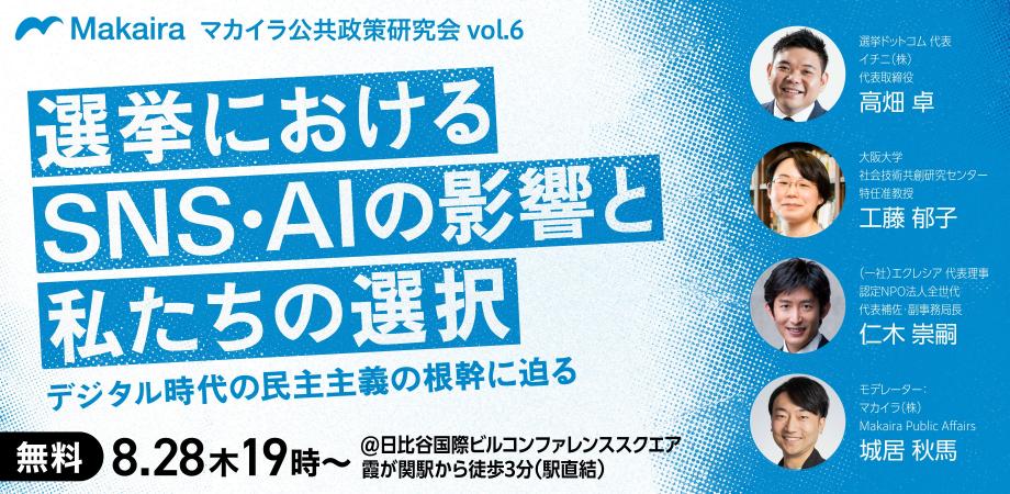 そこで、本イベントでは、選挙に関わる多様なアクターをお呼びし、SNS・AI時代の選挙のあり方と民主主義のあるべき姿を、その後の具体的な提言・活動まで見据えて議論いたします。