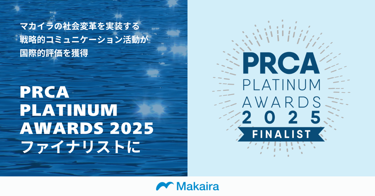 パブリックアフェアーズの専門ファームであるマカイラ株式会社(東京都千代田区、代表取締役CEO:藤井宏一郎、代表取締役COO:高橋朗)は、権威ある国際賞「PRCA Platinum Awards 2025」の「Strategic Communications Award」部門において、ファイナリストに選出されました。